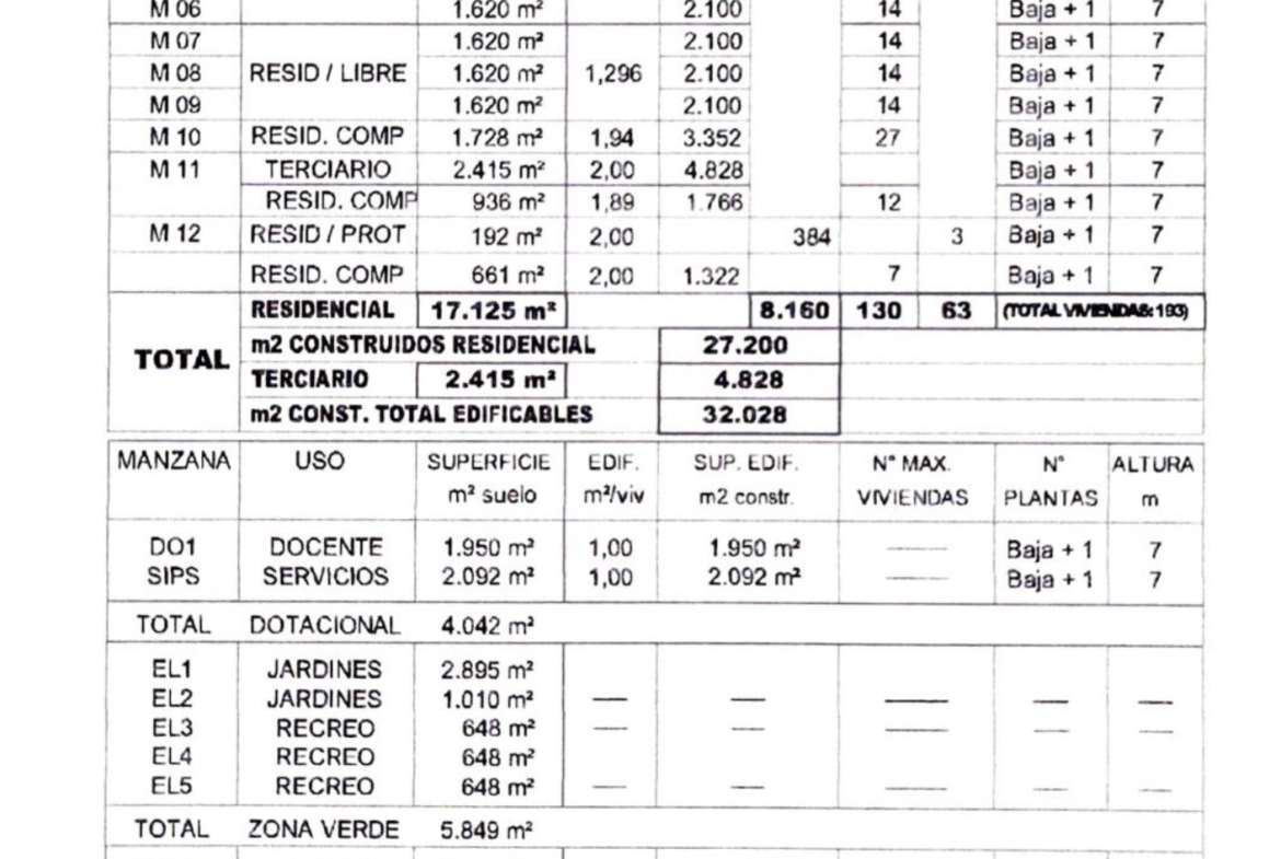 Se pueden construir 123 Viviendas Unifamiliares, 60 Viviendas Plurifamiliares de VPO, y 4828 metros cuadrados de Centro comercial.